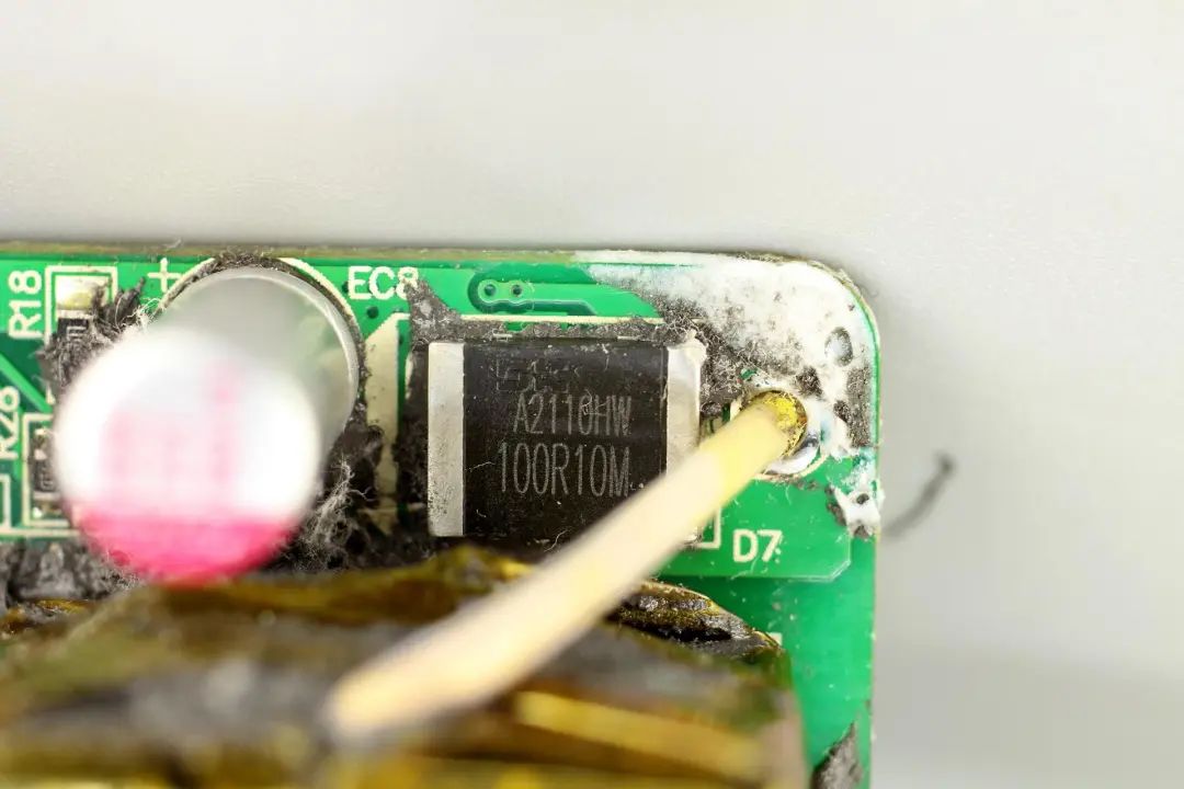 充電器內(nèi)部PCBA模塊采用黃銅散熱片包裹,PCB正面打膠,背面有導(dǎo)熱墊,將熱量傳導(dǎo)至散熱片散發(fā),滿足長時間大功率輸出設(shè)計。初級濾波電容來自黃寶石,次級固態(tài)濾波電容來自柏瑞凱,整機用料均為知名品牌。