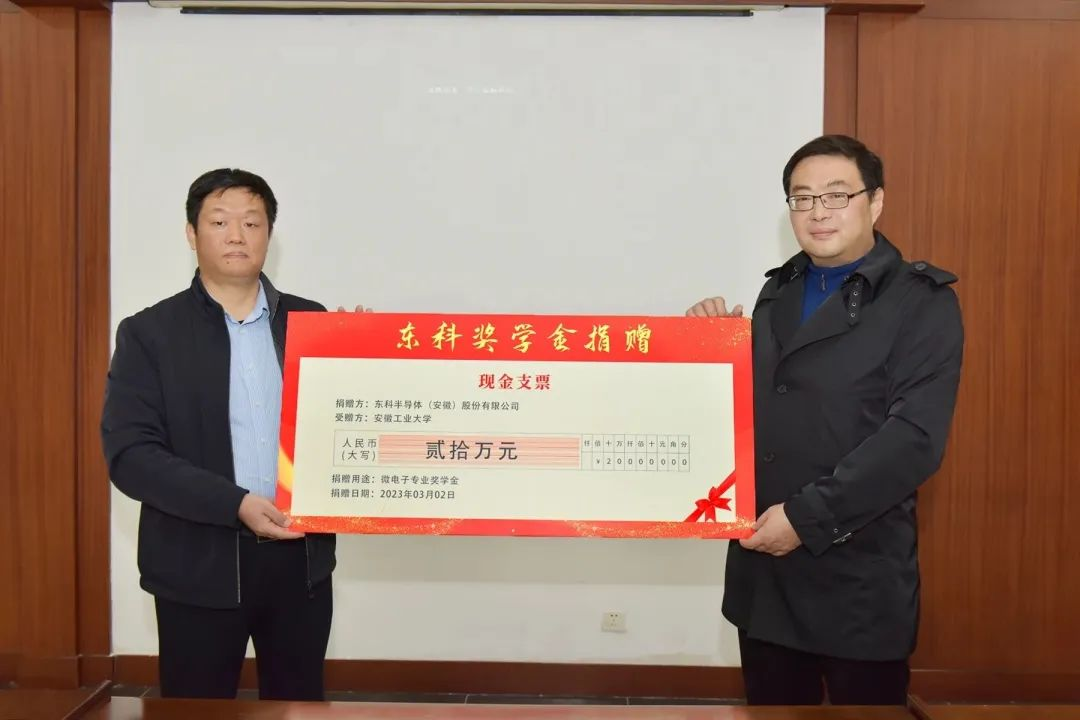2023年3月8日下午,東科半導(dǎo)體(安徽)股份有限公司和安徽工業(yè)大學(xué)共建聯(lián)合實驗室揭牌儀式暨東科專業(yè)獎學(xué)金捐贈儀式在安工大佳山校區(qū)隆重舉行。